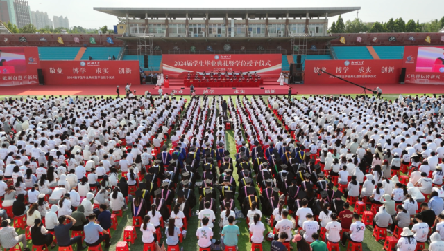 党委副书记胡海泉宣读了2024届研究生硕士学位授予决定、2024届本科毕业生学士学位授予决定、2024届高等学历继续教育本科毕业生学士学位授予决定和2024届本科生荣誉学位授予决定。党委副书记房增福宣读了优秀毕业生表彰决定与2024年西部计划优秀志愿者表彰名单。8787名毕业生中,208名同学为省级师范类优秀毕业生,318名同学获评省级非师范类优秀毕业生,944名同学获评校级优秀毕业生;236名优秀毕业生入选2024年大学生志愿服务西部计划全国项目,24名优秀毕业推免生和在读研究生入选第二十六届研究生支教团,260名同学获“英国365集团公司优秀青年志愿者”荣誉称号。