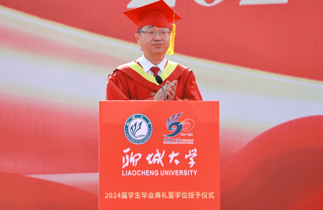 教师代表王凯叮咛同学们要坚定理想信念,厚植家国情怀;要勇于拼搏奋斗,铸就辉煌人生;要涵养个人修为,追求立己达人,更应勇担时代使命,砥砺前行,传承聊大精神,心怀敬畏,勇于探索,在坚持中创新,在创新中蝶变。